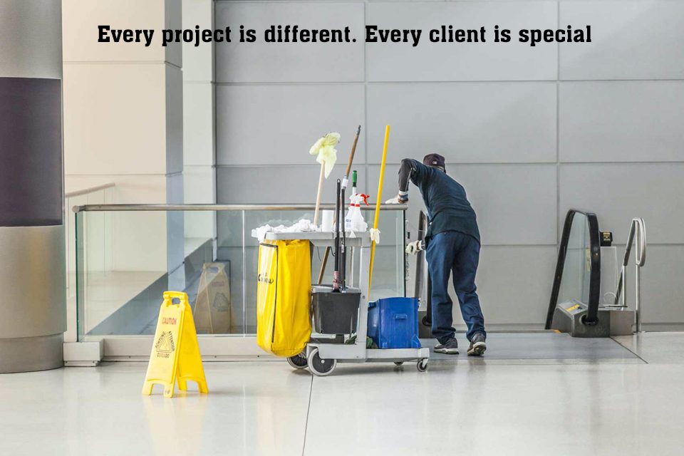 You should expect extremely good results on the following basis: we understand the importance of keeping a clean, safe working environment without causing interruptions. Our service are customized to the individual needs of your company. The staff is therefore 24/7 available, if your company requires, to provide the exact cleaning service that you need.